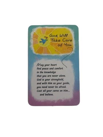 Carmen's (Teresa Ruiz) screen used, hero, "Blue Mountain Arts" Wallet Card that reads: "God will take care of you...".
