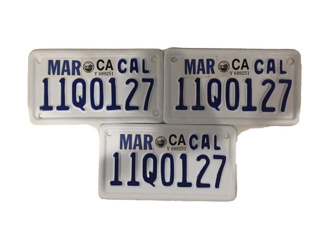 Stuart Long (Mark Wahlberg) screen used, hero, motorcycle license plates, "11Q0127" (3 license plates). (7"x4").