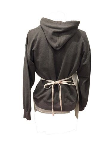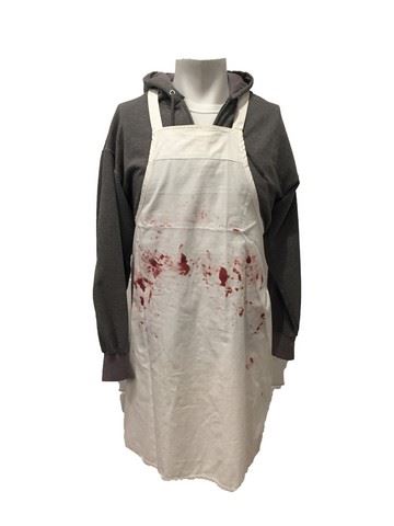 Stuart Long (Mark Wahlberg) screen worn, bloody apron, "Hanes", heathered gray zip hoodie (m), "Hanes" white t-shirt (m). Includes wardrobe tag. From the supermarket scene.