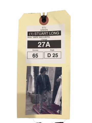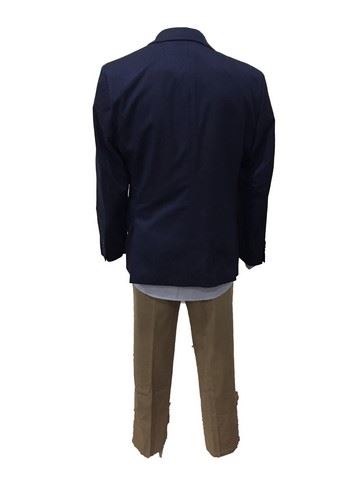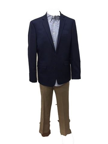 Stuart Long (Mark Wahlberg) screen worn, "Uniqlo", light blue dress shirt (L), khaki "Levi's Dockers" pants (32x30), dark blue "Apt 9" 2 button sport jacket (42R). Includes wardrobe tag. From the East LA Church scene.