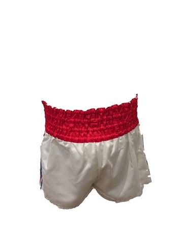Stuart Long (Mark Wahlberg) screen worn, "Everlast", red/white/black, knee length boxing robe with white shawl collar, "MTO", white/red/blue boxing trunks, "Title", white boxing shoes (10), "Casanova" padded leather, white/black groin guard and white with red/blue striped socks. Includes wardrobe tag.