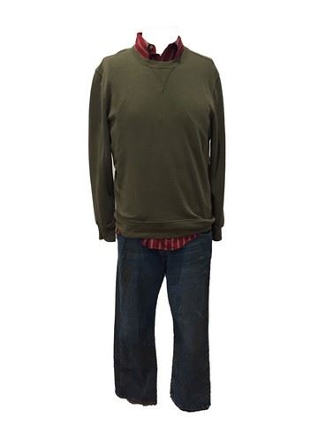 Stuart Long (Mark Wahlberg) screen worn, "Wrangler" blue jeans (32x30), production soiled and shredded on the back pocket, red/cream/blue, "Puritan" l/s dress shirt (L), and "GAP", green, soft cotton sweatshirt (m).