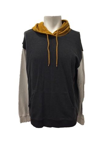 Stuart Long (Mark Wahlberg) screen worn, "Original Use", charcoal/cream/gold color block hoodie (L).From the East LA church/nave/confessional scene.