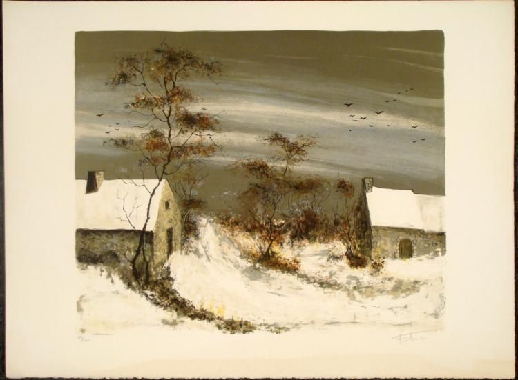 It really feels like winter now, even the birds can't take the frigid cold weather; they are thinking Miami... * * Artist: Fatima * Medium: Lithograph on paper * Image Size: 18" x 21 3/4" * Size of Paper: 22" x 30" * Edition: Out of 250 * Signature: lowe