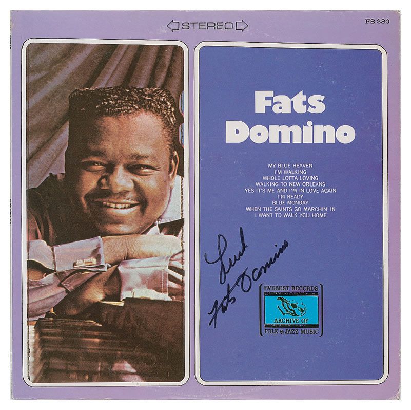 Fats Domino album signed on the front in black felt tip, “Luck, Fats Domino.” In fine condition, with light ‘rings of wear.’ The record is included.