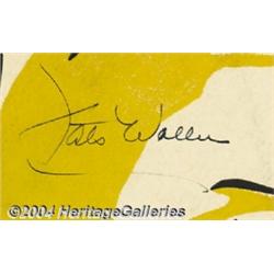 <B>Fats Waller Signed Window Card.</B></I> Born in 1904, Fats Waller studied piano diligently as a boy, and turned professional at age 15. During the 1920's, he accompanied Bessie Smith and other blues singers in cabarets and theaters, and by the late 1920's, Waller began composing popular songs, including songs for the 1928 Broadway review, Connie's Hot Chocolates. In 1934, Waller made a series of recordings for RCA Victor that became his legacy. Many of these recordings were satirical tunes, and his happy-go-lucky manner and his comical lyrics made him a huge hit. By 1943, Fats had gone to Hollywood to make some films, and he was on the verge of international success. On a train trip going back to New York City, Waller died. When the train made a stop in Chicago, authorities found a stateroom filled with empty liquor bottles and the body of Fats Waller. Some of his memorable tunes, including "Honeysuckle Rose," "Ain't Misbehavin'," "Jitterbug Waltz," and "Blue, Turning Gray Over You," are still favorites of musicians today. This fantastic card features an image of Waller over a yellow background, and is signed by Fats on the right side of the card. Pinholes at corners and some slight edge wear would easily mat or frame out. <I>Accompanied by COA from Jazz & Big Band expert Larry Rafferty.</B></I> <BR><BR><B>Important notice:</B> Heritage usually auctions material at the rate of 200-250 lots per hour. On some occasions eBay Live bid software or the Internet may not be able to keep up with the pace of the auction. We recommend placing a realistic absentee bid now as insurance to avoid disappointment. Occasionally the auctioneer may eliminate or reject an eBay Live bid, and the auctioneer may also reopen a lot after the close of the eBay live bidding (usually because we missed an audience bid), and may reject your bid even if it shows you as the winning bidder. By bidding via eBay Live, you agree that Heritage may award the lot to another bidder at its sole discretion under the circumstances described above or any other reasonable circumstances. Since eBay bids are not shown to us until we open the lot on the floor, we treat those bids just like floor bids. In most cases the floor responds before the eBay bid is presented to us, due to Internet lag time, so for consistency we have made it a policy that floor bids are always considered first over tie eBay live bids. Also please note that all Heritage lots purchased through eBay Live carry a 24.5% Buyer's Premium. Please make sure you read the Terms and Conditions before you bid.