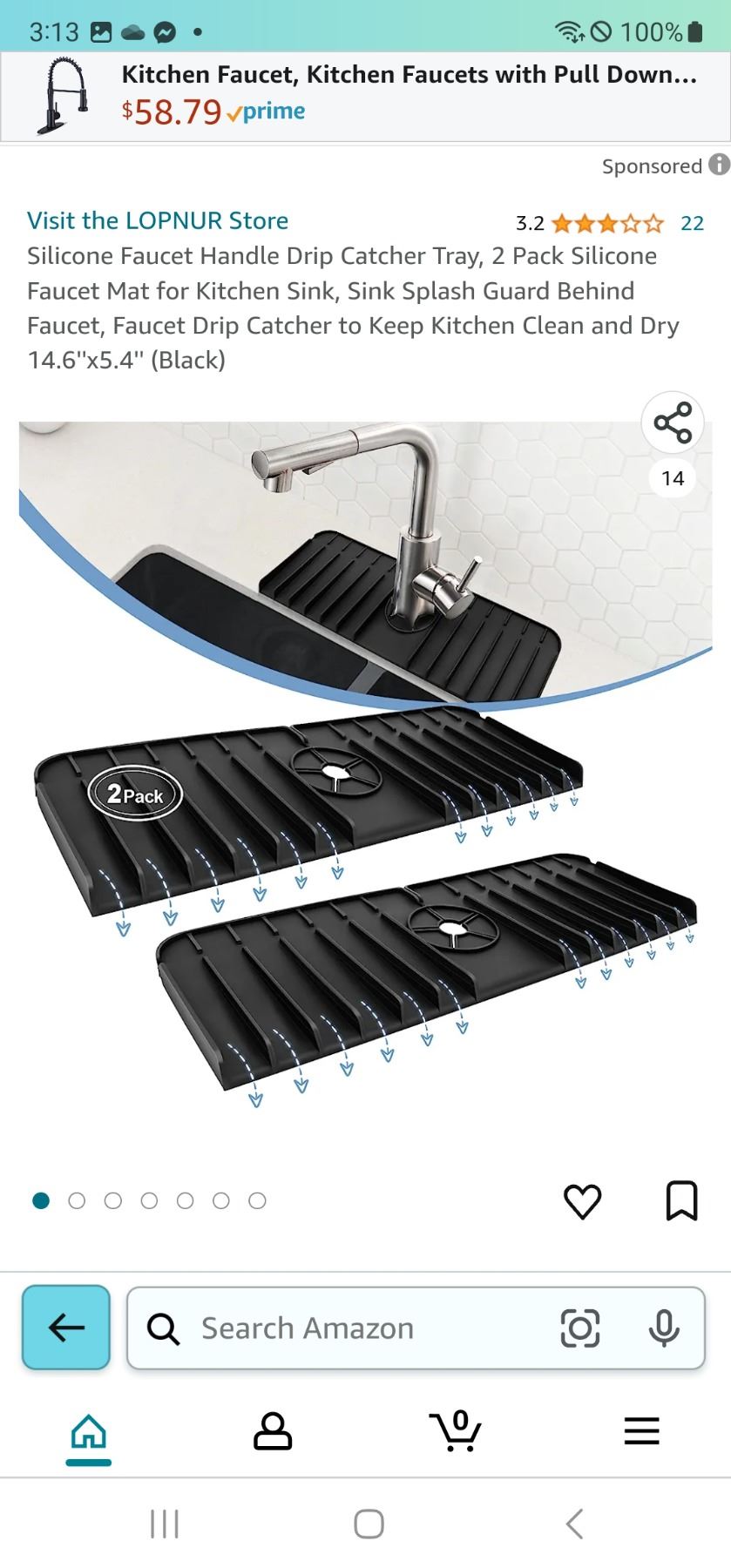 Silicon Faucet Matts, Durable Sink Guard, Reusable Water Catcher Tray 2-Pack, Grey/Black, Brand New