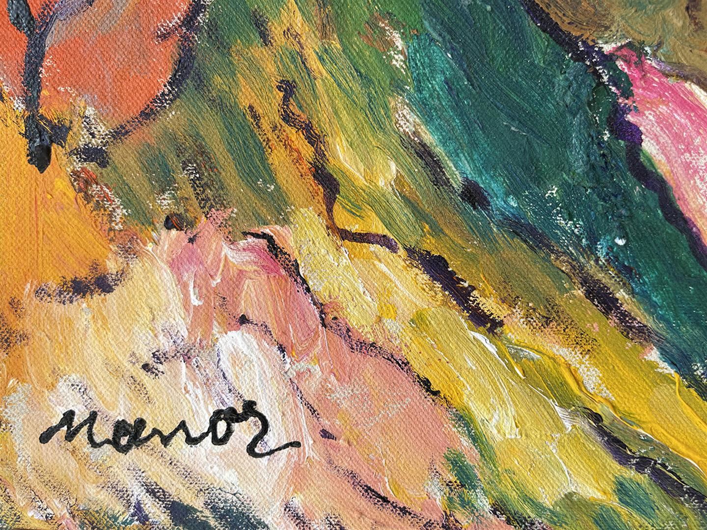 Brilliant original acrylic on canvas. Hand signed by Artist. This artwork comes framed ready to hang. Art size16x20 inches. Frame size 22x26.