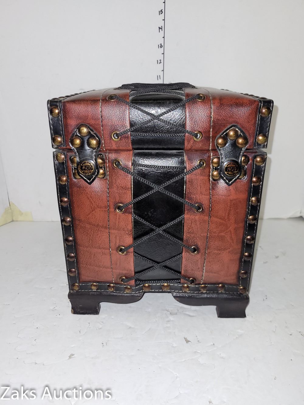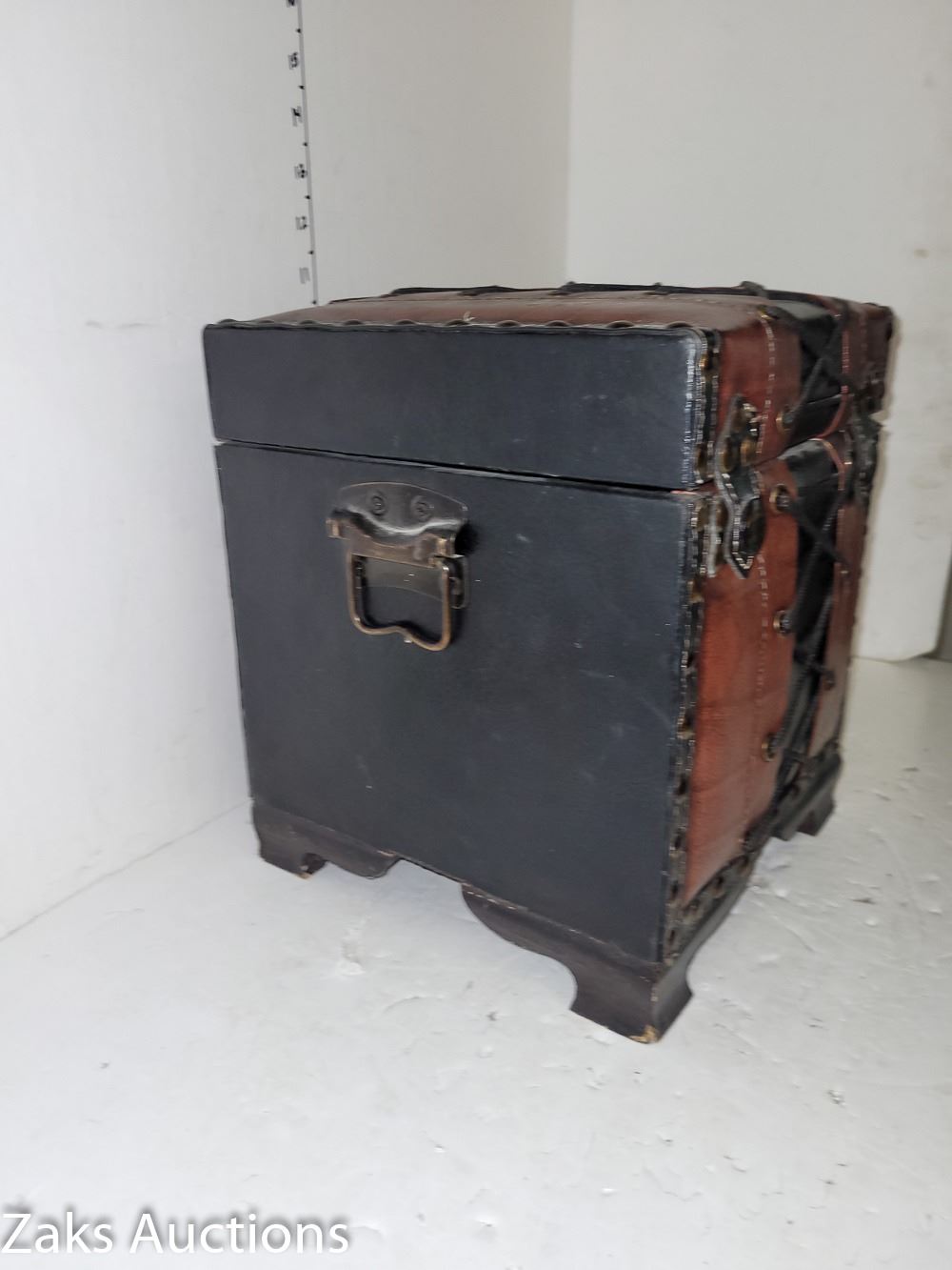Faux Patent Leather Footstool | Hinged Cubby Storage Bin w/ Contents