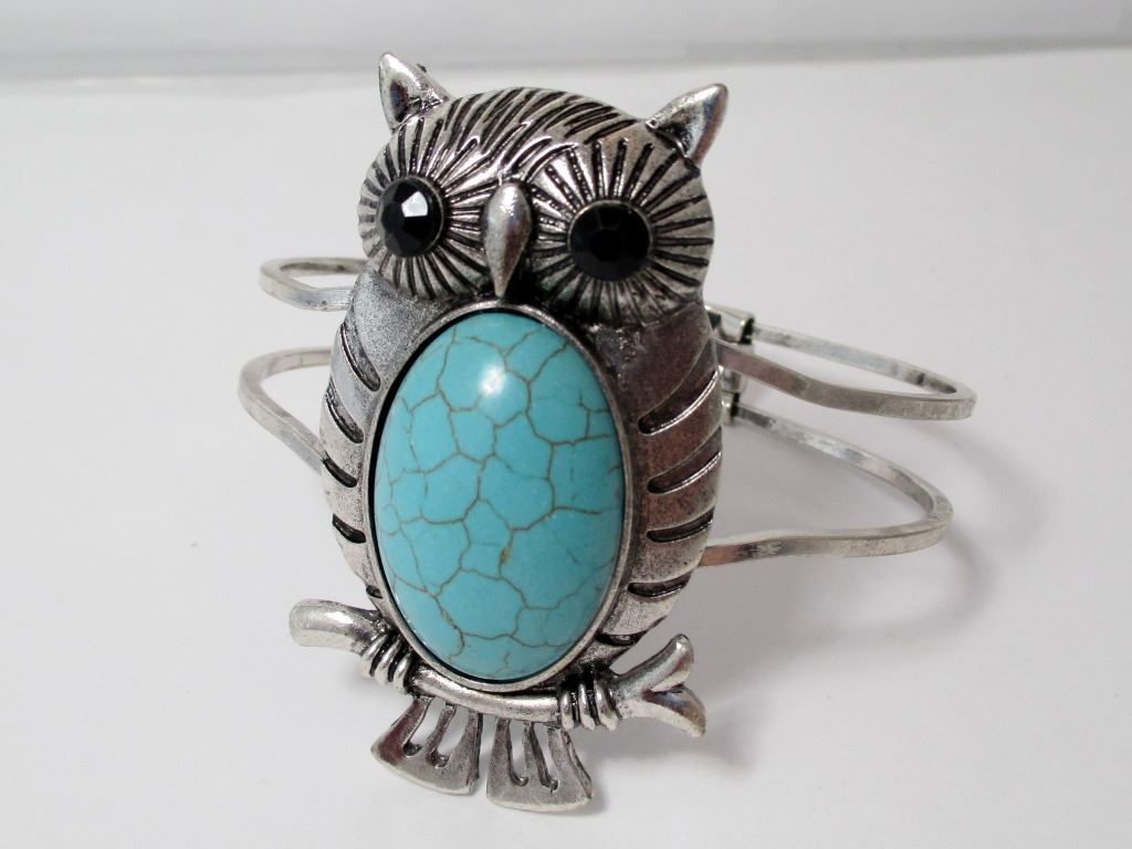 Faux Turquoise Silver Plate Bracelet
