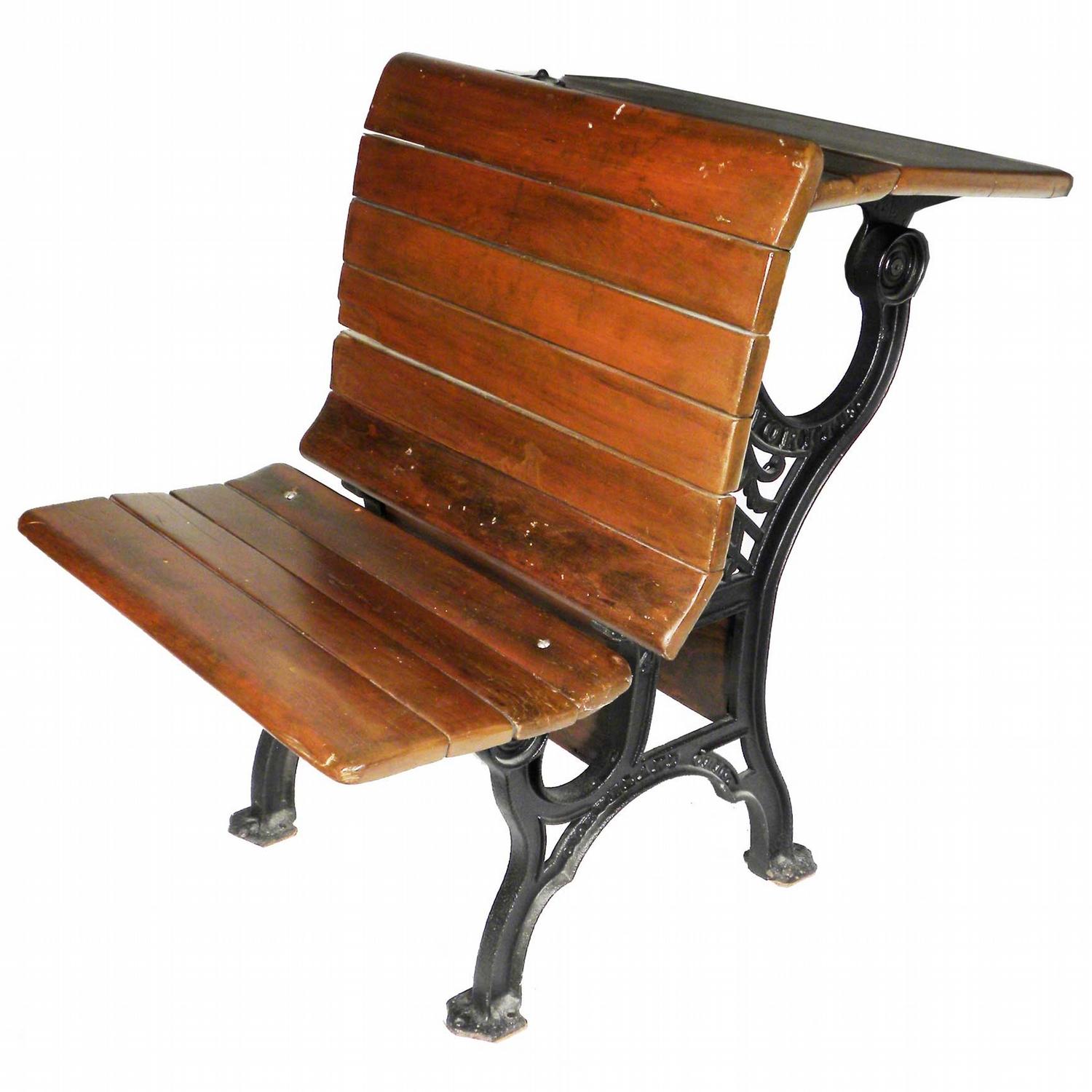 Favorite Folding Desk and Seat. Made in Cleveland, OH. #4. Original porcelain ink well with cast iron lid. Very good original condition. 18 X 25 1/2 X 27 inches.