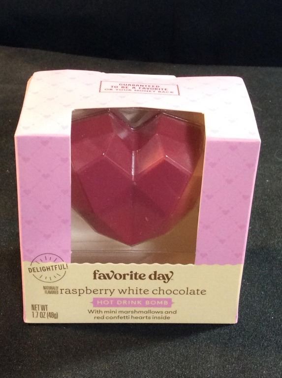 Favorite day raspberry white chocolate hot drink bomb with mini marshmallows and red confetti hearts