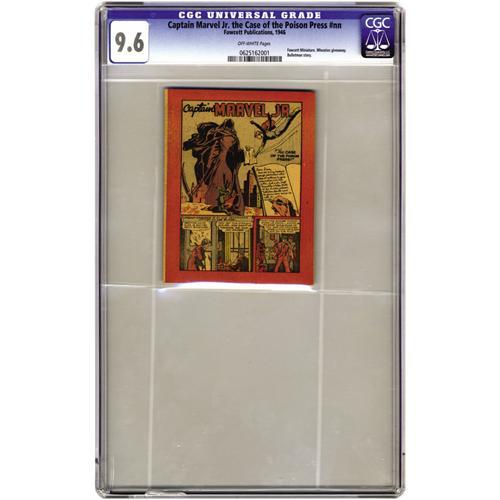 <B>Fawcett Miniatures #nn - Captain Marvel Jr. "The Case of the Poison Press" (Fawcett, 1946) CGC NM+ 9.6 Off-white pages.</B></I> Wheaties giveaway. Bulletman also appears. Overstreet 2006 NM- 9.2 value = $200. CGC census 3/06: 4 in 9.6, 2 higher.