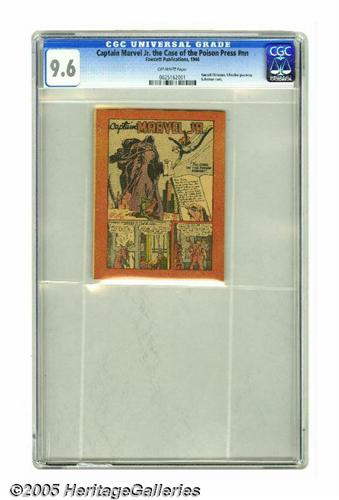 <B>Fawcett Miniatures #nn - Captain Marvel Jr. and the Case of the Poison Press (Fawcett, 1946) CGC NM+ 9.6 Off-white pages.</B></I> Wheaties giveaway. Bulletman also appears. Overstreet 2005 NM- 9.2 value = $195. CGC census 2/05: 3 in 9.6, none higher.