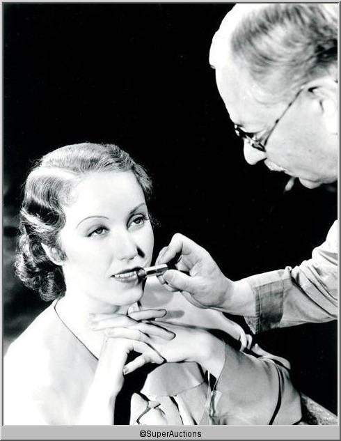 Fay Wray from The Max Factor Collection / (1) 8 x 10 Nitrate Negative No. 153 of Fay Wray Posing while Max Factor Applies Lipstick Make-Up / (2) 8 x 10 Black & White Photographs