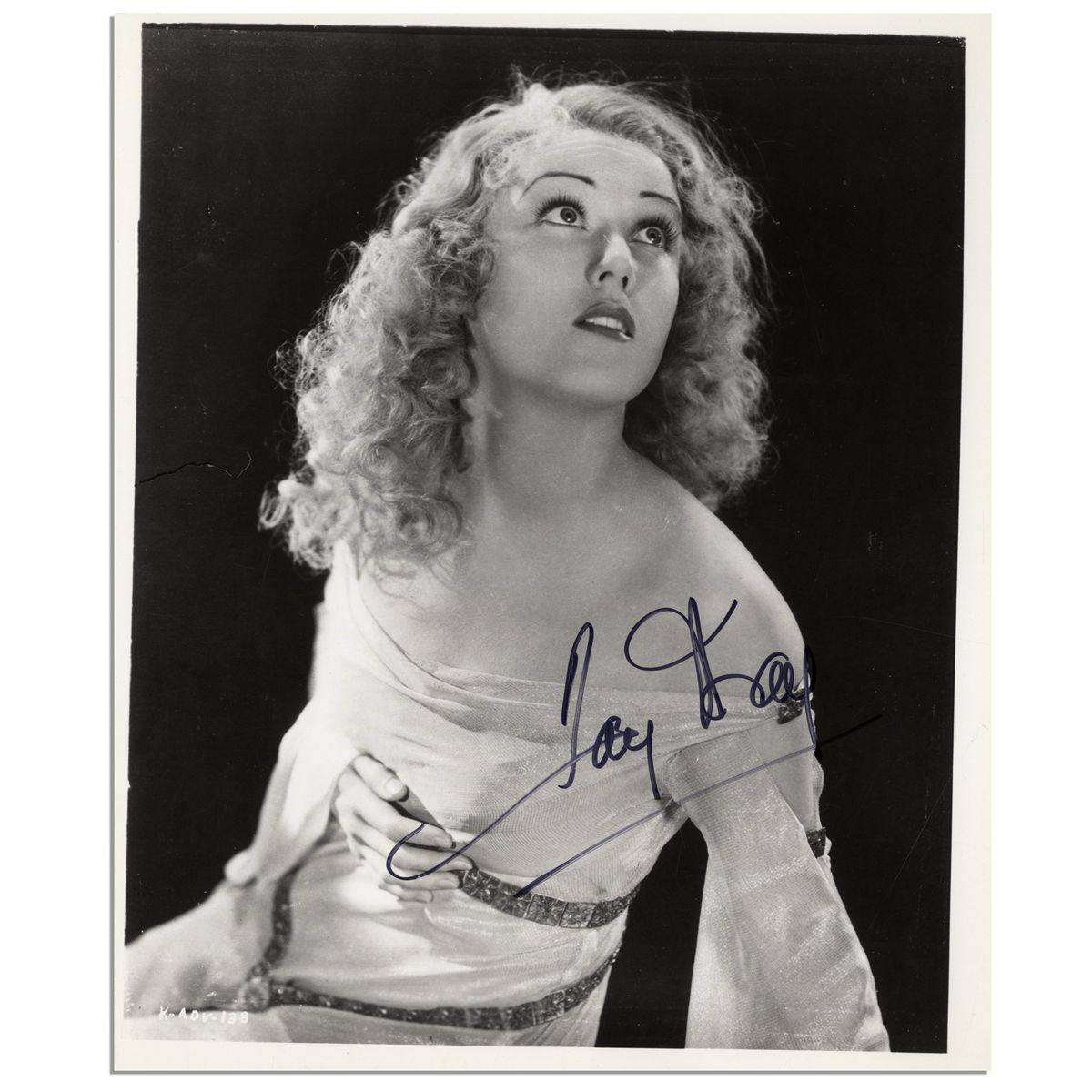Fay Wray photo signed. The ''King Kong'' star poses in costume, possibly onstage, and signs ''Fay Wray'' in felt tip across her left shoulder. Glossy photo measures 8'' x 10''. Fine.