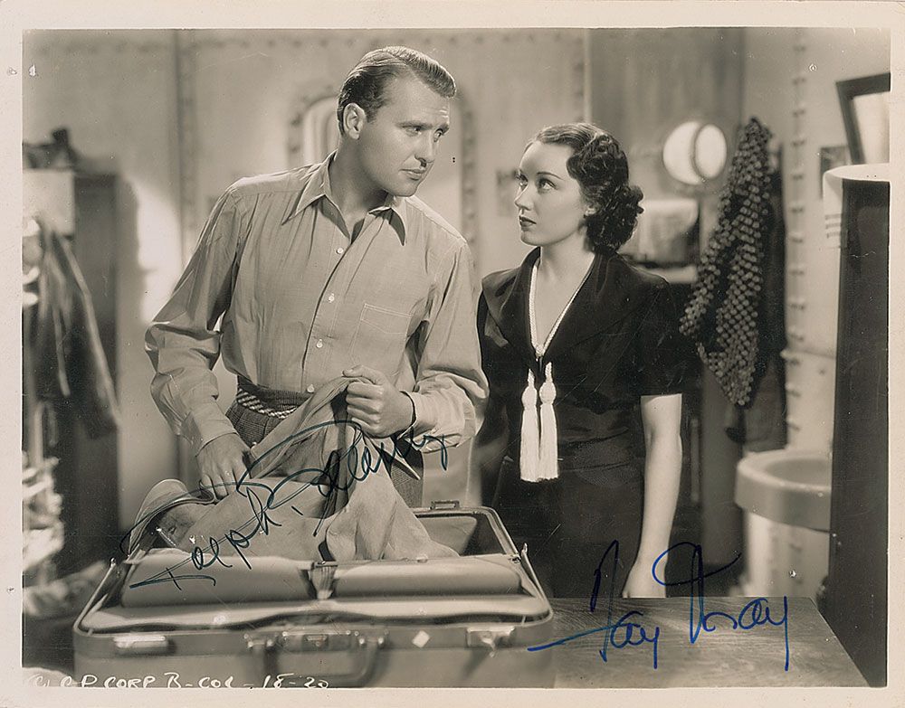 Glossy 10 x 8 photo of Wray and Bellamy together in a scene, signed in blue felt tip by Wray and black felt tip by Bellamy. In fine condition, with tack holes to the left border.