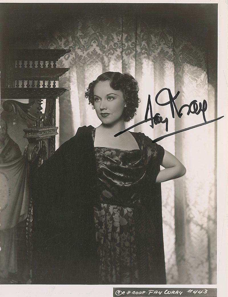 Glossy 7.5 x 9.75 publicity photo of Wray in They Met in a Taxi, signed in black felt tip. A few light surface impressions and trimmed edges, otherwise fine condition.