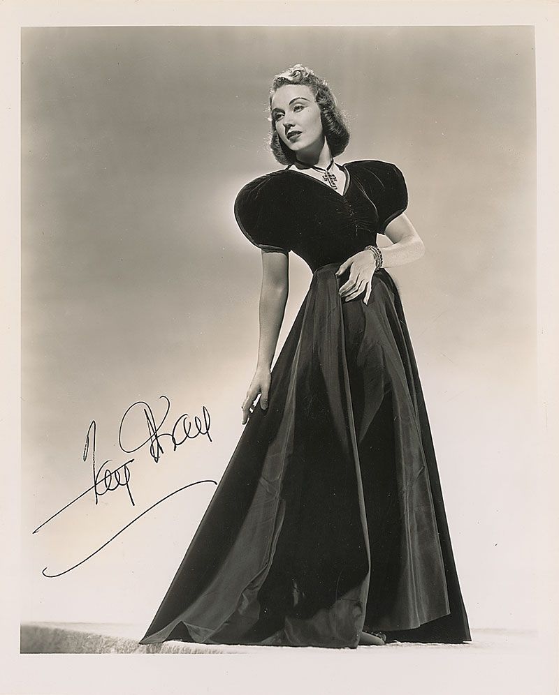 Glossy 8 x 10 photo of Wray in a flowing gown, signed against a light area of the background in black ink. In fine condition.