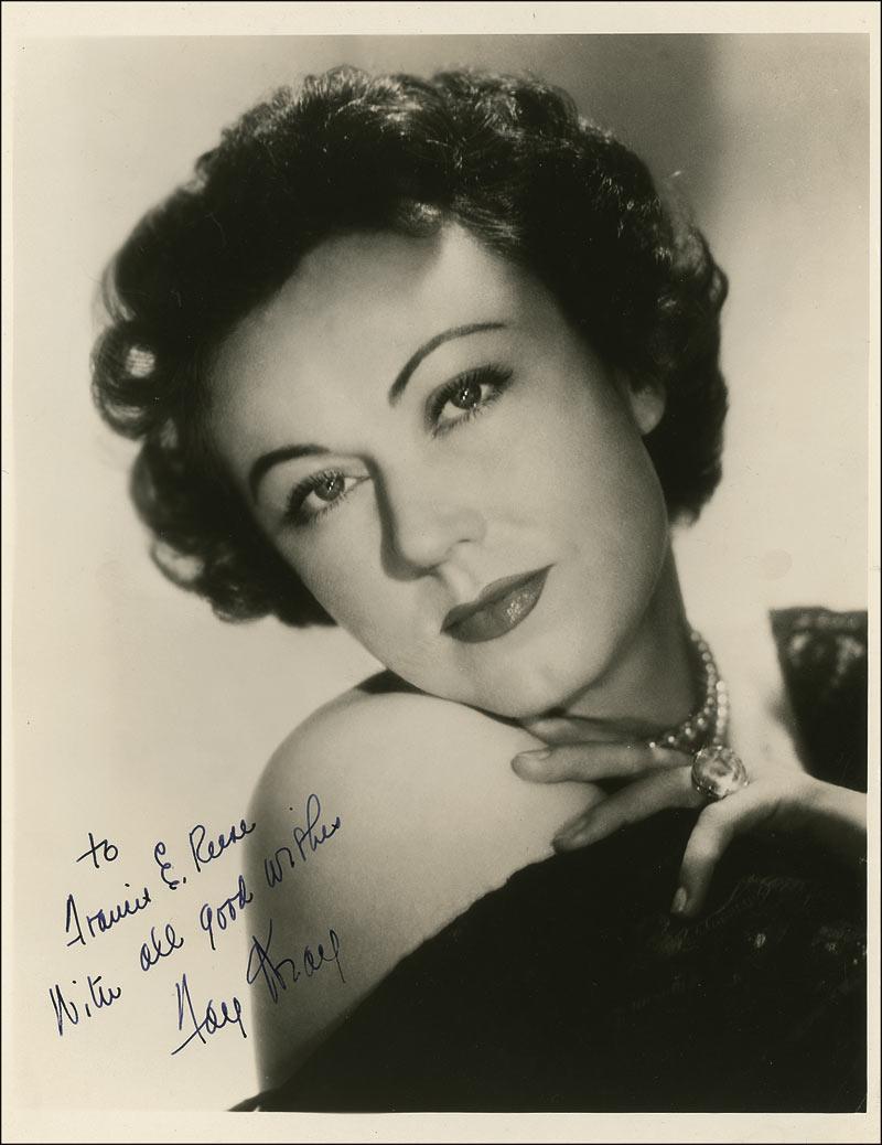 Lovely glossy 7.75 x 10 photo of Wray in an off-the-shoulder dress, signed and inscribed in black fountain pen, “To Francis E. Reese, With all good wishes, Fay Wray.” In fine condition, with lightly trimmed side edges. Pre-certified PSA/DNA and RRAuction COA.