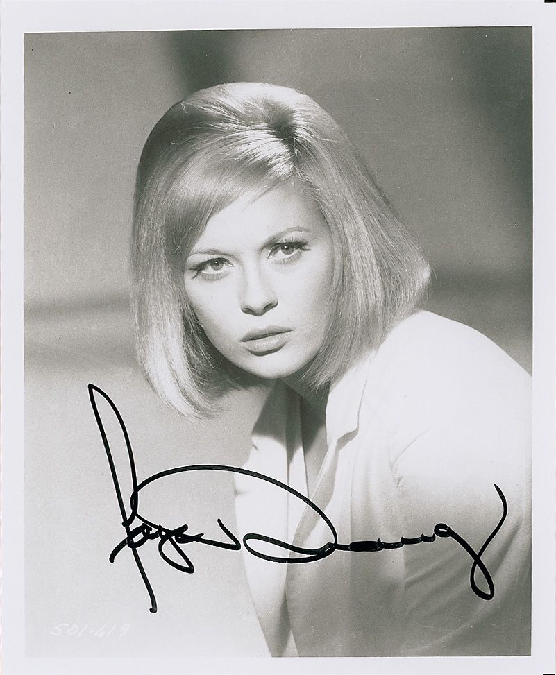 Glossy 8 x 9.75 photo of a young Dunaway as she appeared in Bonnie and Clyde, boldly signed in black felt tip. In fine condition.