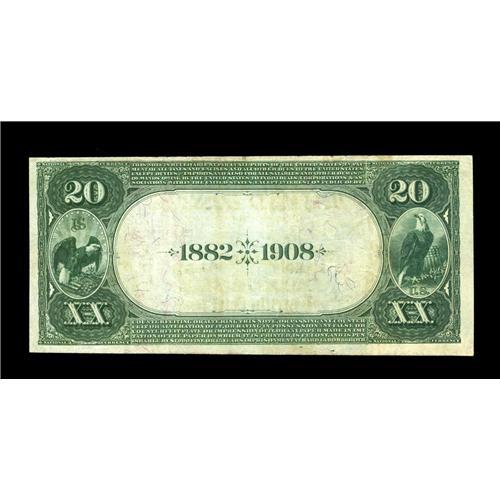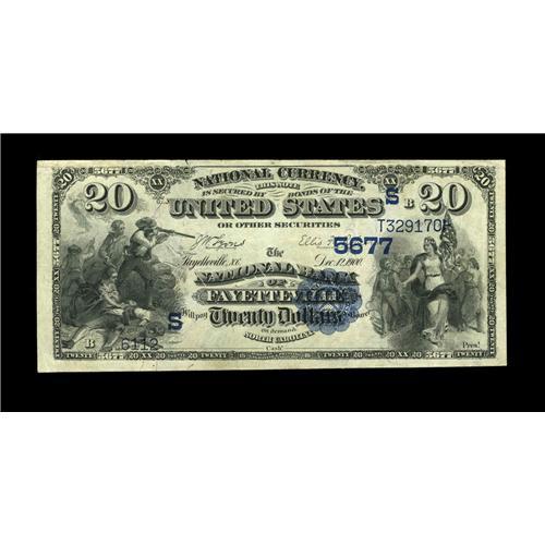 <B>Fayetteville, NC</B></I> - $20 1882 Date Back Fr. 555 <B>The NB </B></I> Ch. # (S)5677<BR>Here is an absolutely beautiful note with crisp paper and vivid overprints on a bank handled by us for the first time. Unfortunately the signatures have faded into history. <B>Very Fine-Extremely Fine.</B></I>