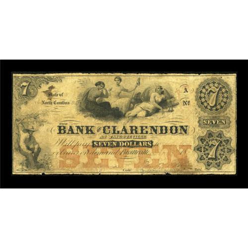 <B>Fayetteville, NC- Bank of Clarendon</B></I> $7 Nov. 1, 1855 G5a <BR> The last time that we were able to offer a $7 note on the Bank of Clarendon was in September 2003, where it brought almost double the high estimate. <B>Very Good</B></I>. <BR><BR><b>Shipping:</b> Coins & Currency (<a target="_blank" href="http://www.heritageauctions.com/common/shipping.php">view shipping information</a>)