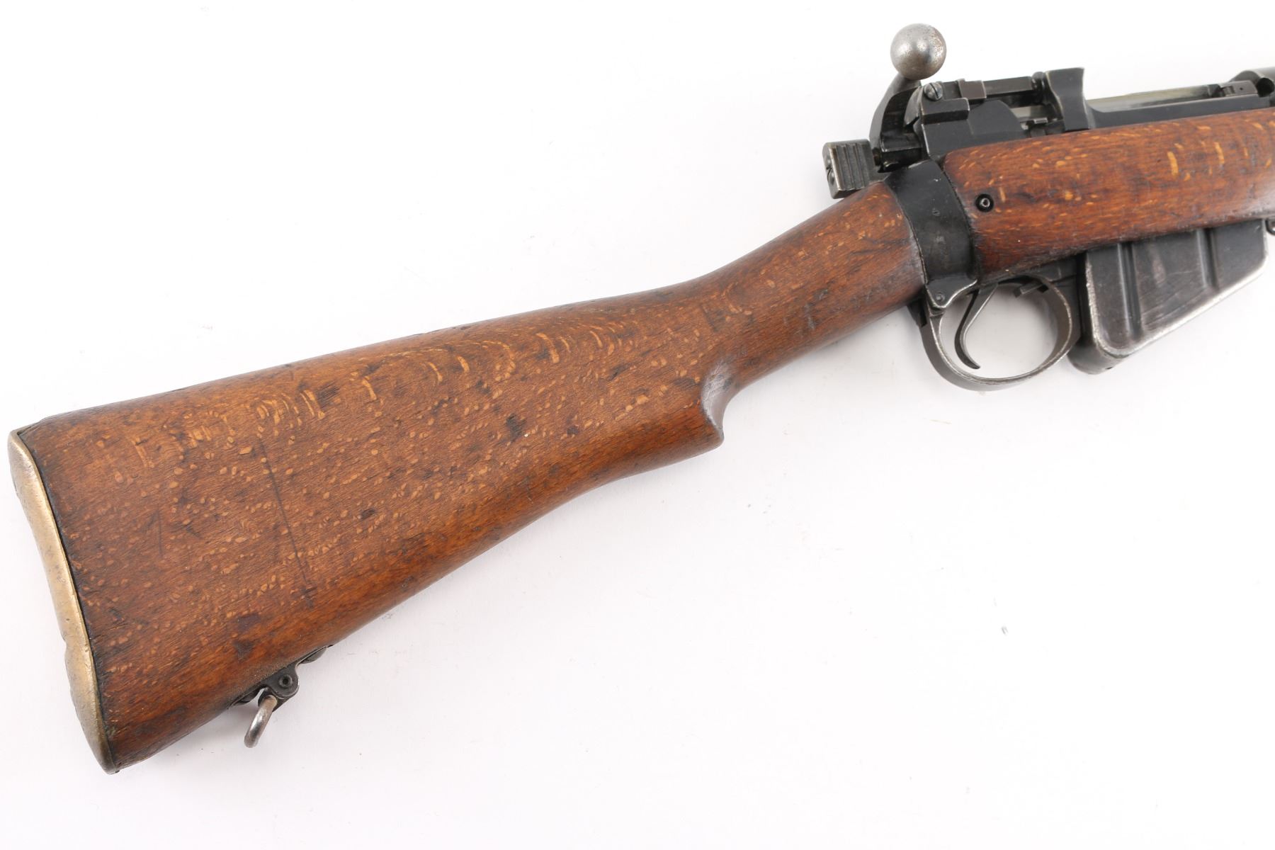 GOOD: Some minor replacement parts; metal smoothly rusted or lightly pitted in places, cleaned or re-blued; principal letters, numerals and design on metal legible; wood refinished, scratched bruised or minor cracks repaired; in good working order.