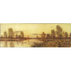 Feannon Fraser 1908- Pair of Edwardian watercolours church, river and houses, 18cm x 54cm