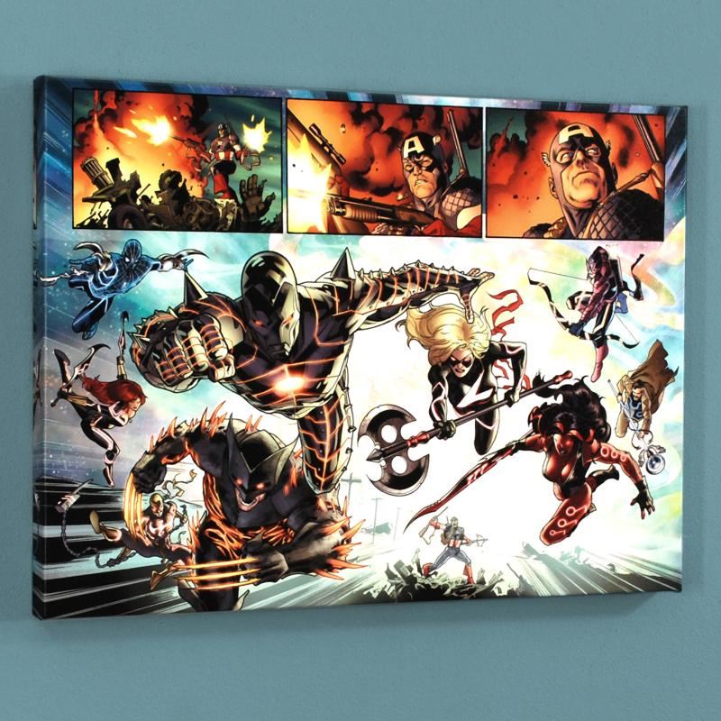 A piece of comic book history, this limited edition print, drawn by Stuart Immonen, depicts classic Marvel characters. Stuart Immonen is a Canadian comic book artist. He is best known for his work on Nextwave, Ultimate X-Men, The New Avengers and Ultimate Spider-Man. Immonen studied at Toronto's York University, pursuing a career in art. In 1988, he self-published a series called Playground; it was his first published work. He worked at several smaller comic book companies before being hired by DC Comics and Marvel Comics in 1993. "Fear Itself #7" is a limited edition giclee on canvas by Stuart Immonen presented by Marvel Comics! This piece comes gallery wrapped and ready to hang. Includes Certificate of Authenticity! Measures approx. 24" x 18" (image).