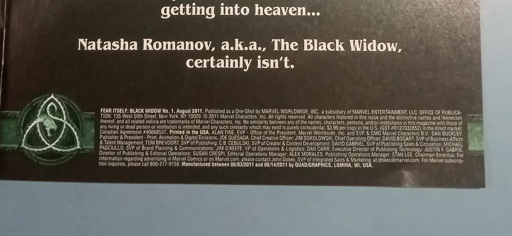 Fear Itself: The Black Widow #1 One-Shot (Marvel, 2011) Cullen Bunn
