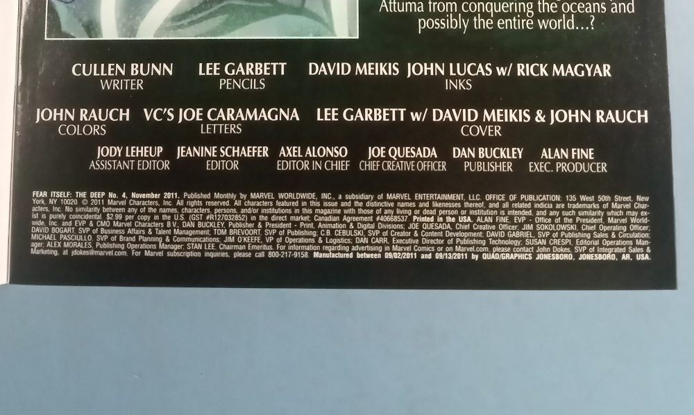 Fear Itself: The Deep #4 (of 4) (Marvel, 2011) Cullen Bunn, Lee Garbett