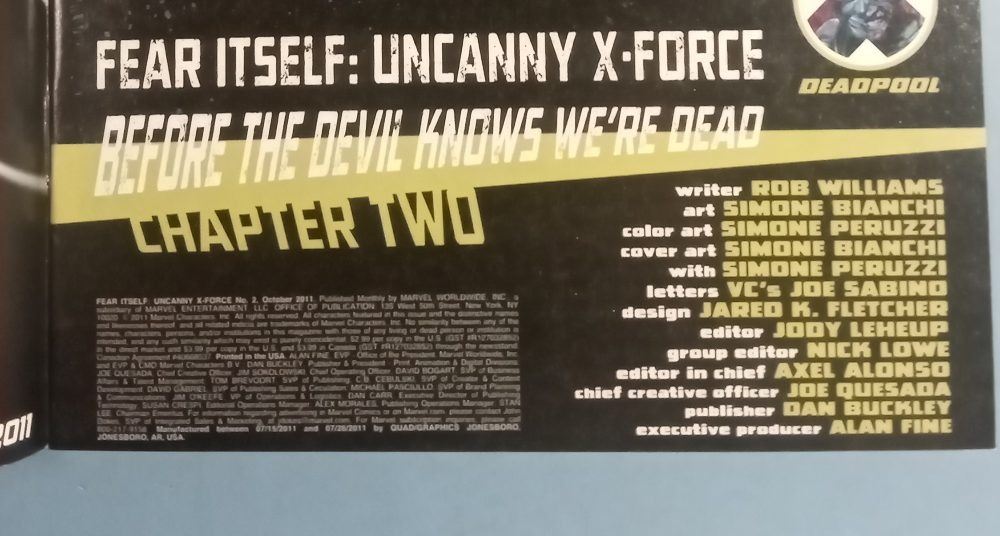 Fear Itself: Uncanny X-Force #2 (Marvel Comics, 2011) Williams & Bianchi