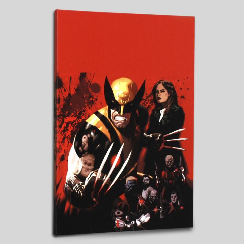 A piece of comic book history, this limited edition print, drawn by Daniel Acuna, depicts teeth-gnashing wild man Wolverine and friends. Spanish artist Daniel Acuna cites artists like Jack Kirby and Simon Bisley as his early artist influences. After doing some occasional cover art for Marvel, Acuna signed an exclusive contract with Marvel in 2007. "Fear Itself: Wolverine #1" is a limited edition numbered giclee on canvas by Daniel Acuna presented by Marvel Comics. This piece comes gallery wrapped and ready to hang. Includes Certificate of Authenticity! Measures approx. 18" x 27" (image); 1.5" (depth).