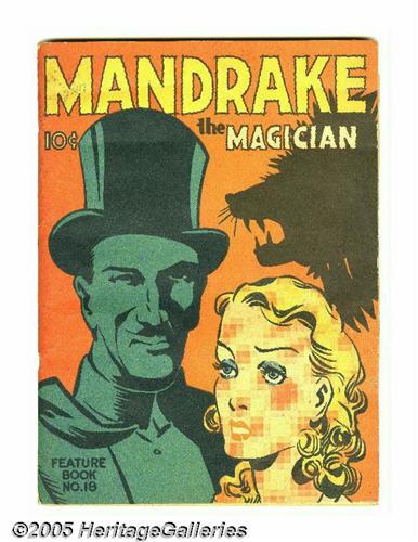 <B>Feature Books #18 Mandrake the Magician (David McKay, 1938) Condition: VG/FN.</B></I> Spine split below bottom staple. Penciled "22117" on front cover. A couple of interior pages loose. Wonderful front cover art. Overstreet 2005 VG 4.0 value = $120; FN 6.0 value = $180. <I>From the Larry Jacobs Collection.</B></I>
