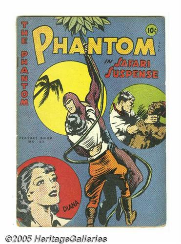 <B>Feature Books #53 The Phantom in Safari Suspense (David McKay, 1947) Condition: VG.</B></I> Great cover image. Lower right side corner nipped completely through the book. Minor overall wear. Overstreet 2005 VG 4.0 value = $80. <I>From the Larry Jacobs Collection.</B></I>
