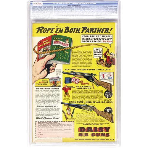 50. Since we cannot examine encapsulated notes or comics, they are sold "as is" without our grading opinion, and may not be returned for any reason. Auctioneer shall not be liable for any patent or latent defect or controversy pertaining to or arising from any encapsulated collectible. In any such instance, purchaser's remedy, if any, shall be solely against the service certifying the collectible.