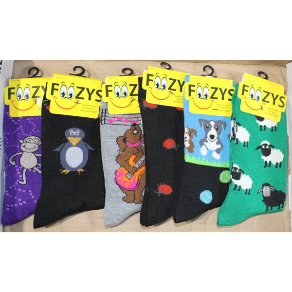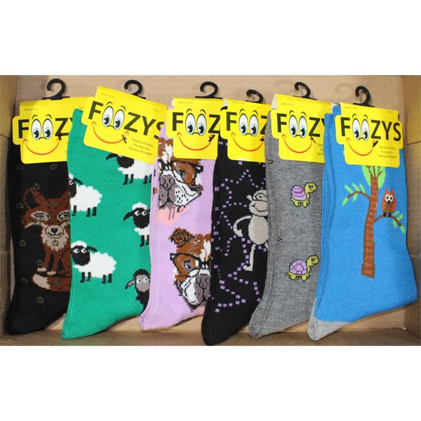 6 PRS FOOZY'S SOCKS INCL. DOG OWL TURTLE ETC.