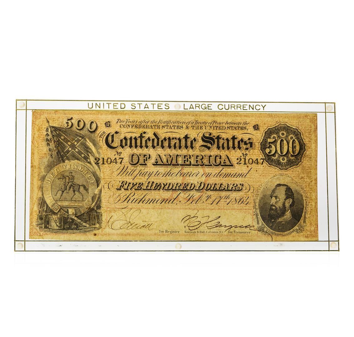 One Feb 17, 1864 $500 The Confederate States of America Note.