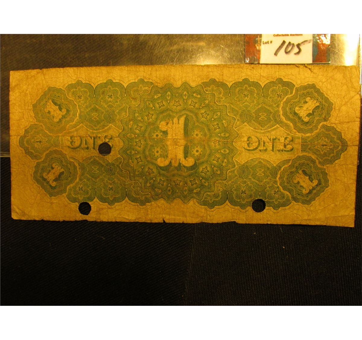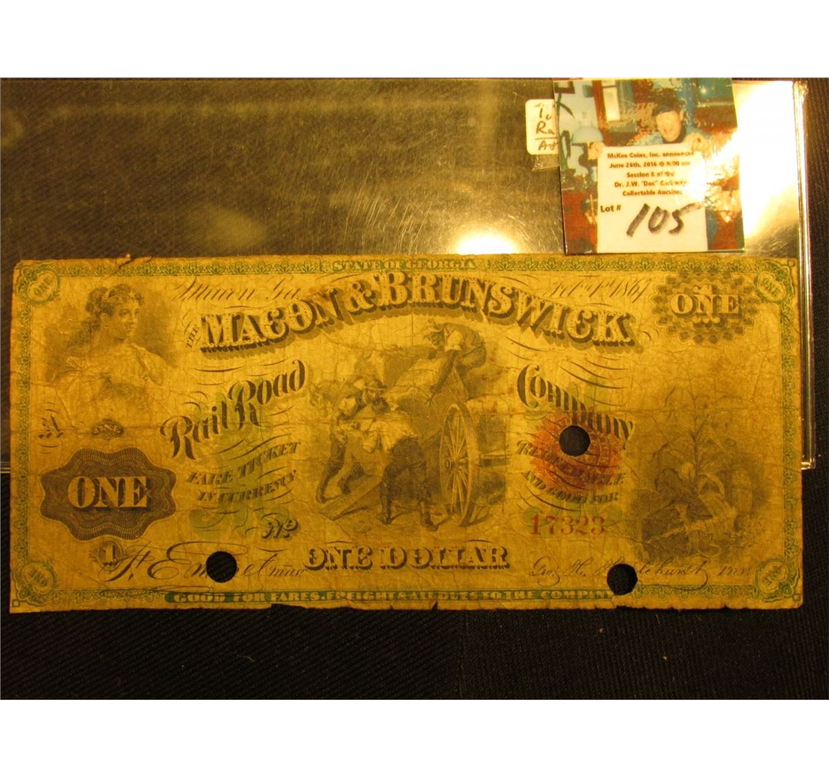 Feb. 1st, 1867 "Macon & Brunswick Railroad Company" One Dollar. Broken Banknote. Hole cancelled.