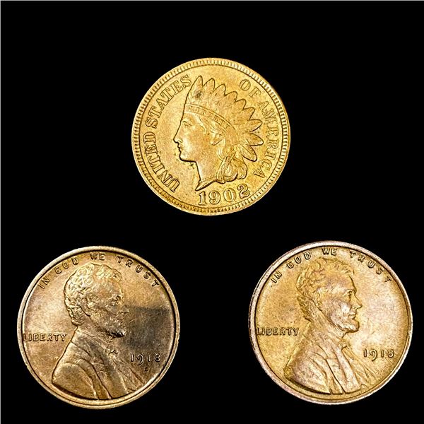 [3] Varied US Cents [1902, 1918-S, 1918] HIGH GRAD