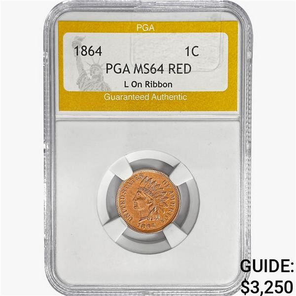 1864 Indian Head Cent PGA MS64 RED L On Ribbon