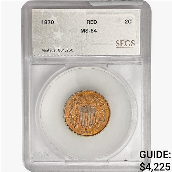 1870 Two Cent Piece SEGS MS64 RED