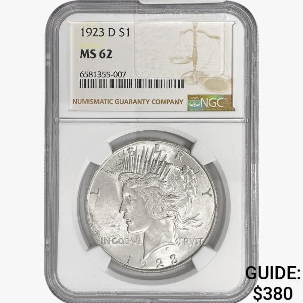 1923-D Silver Peace Dollar NGC MS6243377a - 1923-D Silver Peace Dollar NGC MS62