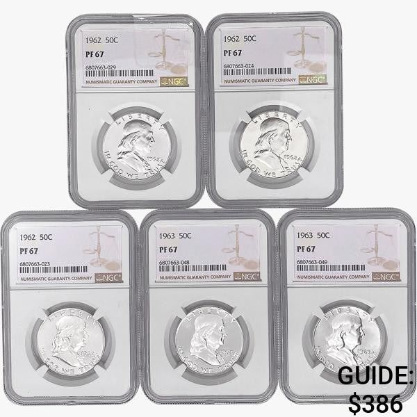 [5] Franklin Half Dollars NGC PF67 [[3] 1962, [2]