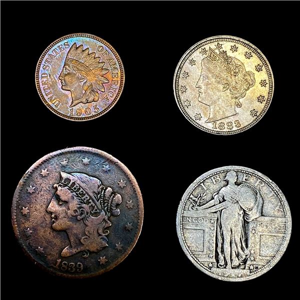 [4] Varied US Coinage [1839, 1883, 1905, 1917] HIG