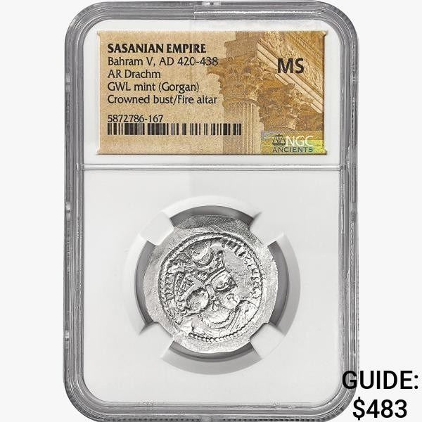 420-438 AD Sansanian Empire Silver Drachm NGC MS