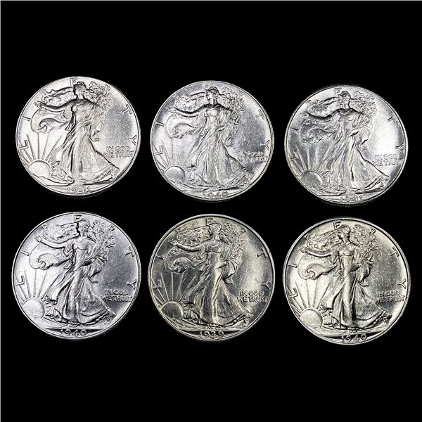 [6] Walking Half Dollars [1939-S, [2] 1940, 1940-D