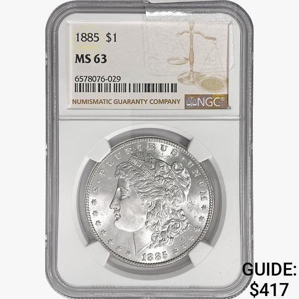 1885 Morgan Silver Dollar NGC MS6343525a - 1885 Morgan Silver Dollar NGC MS63