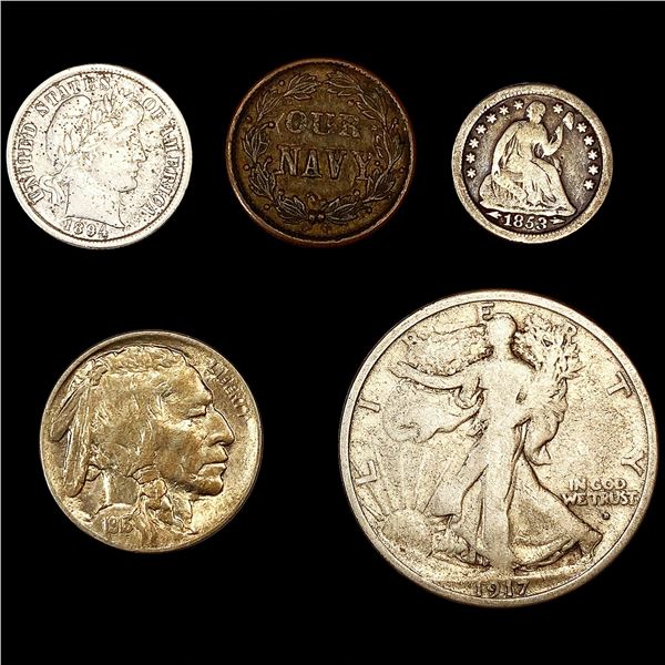 [5] Varied US Coinage (1853-O, 1864, 1894, 1913, 1